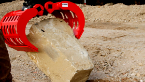 Aanbouwdelen voor wielladers en graafmachines werkzaam in de bosbouw. Denk hierbij aan houtgrijpers en bomenknipscharen.